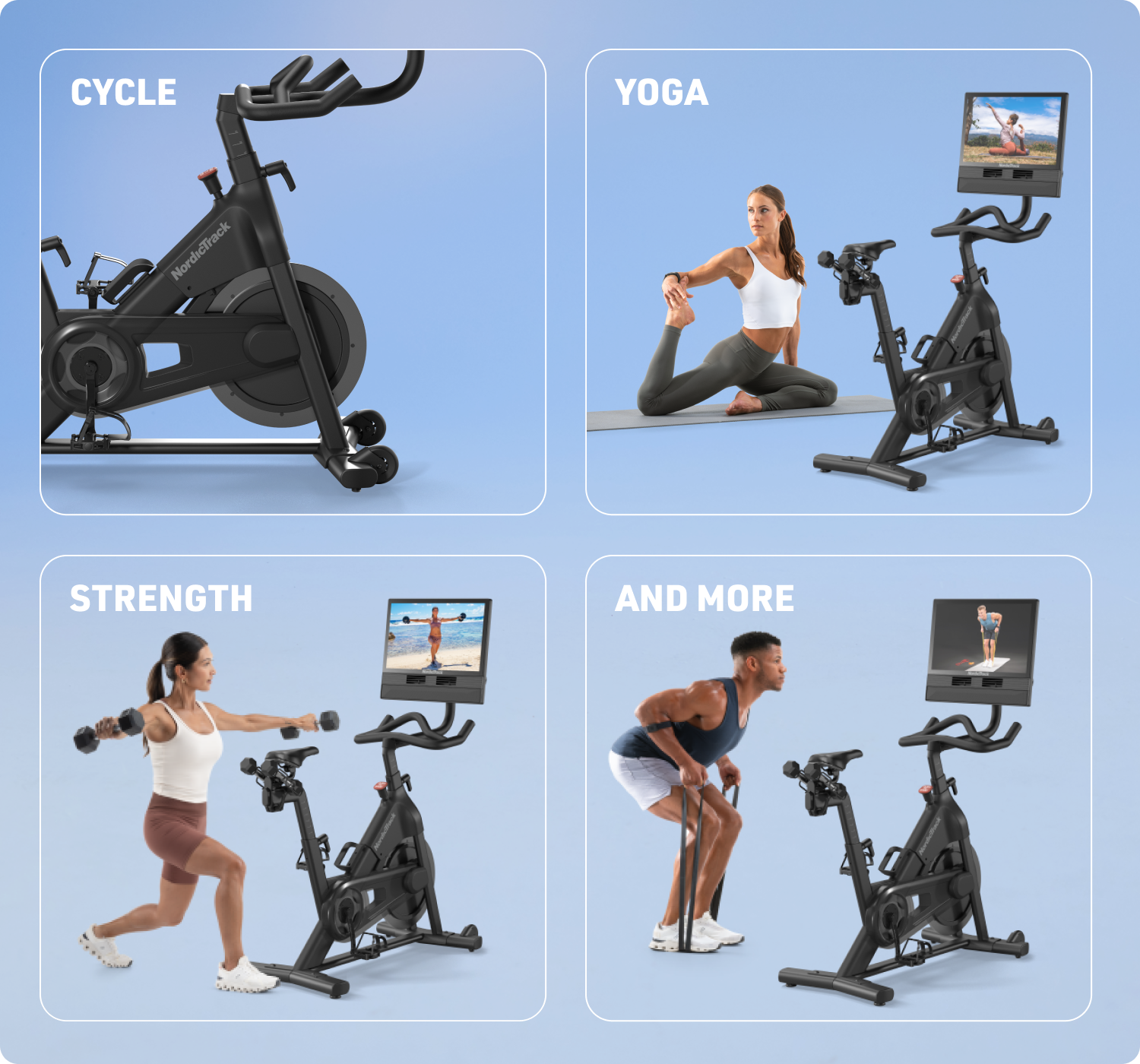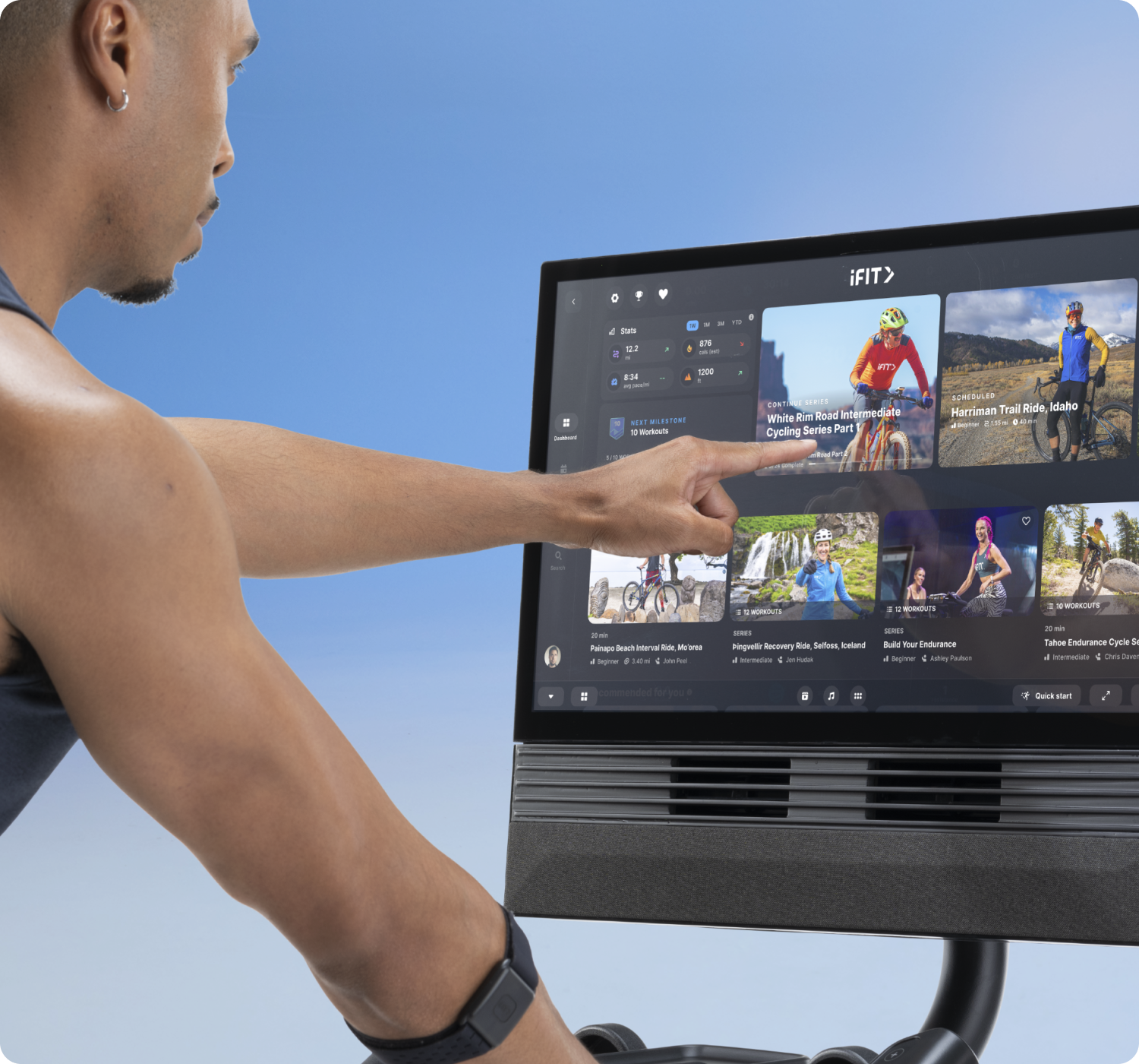 The S24 smart bike adjusts to you. Just press start and iFIT does the rest.