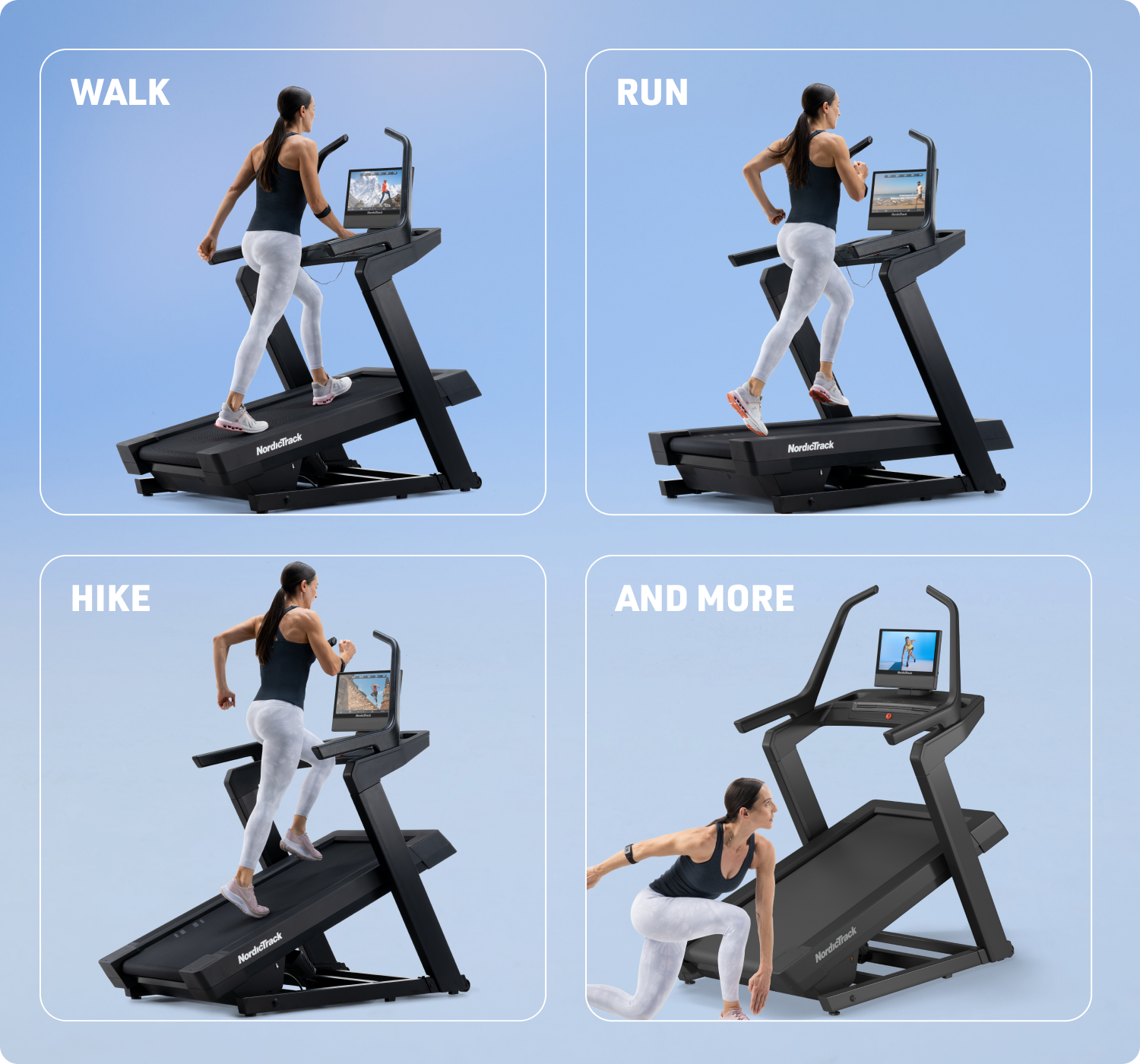 The AutobreezeTM fan automatically adjusts with the intensity of your workout to keep you cool. One machine for any workout. Walk, run, and hike, then turn the screen for strength, yoga, and more.